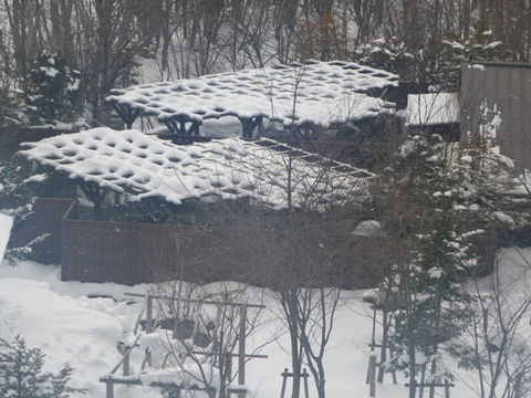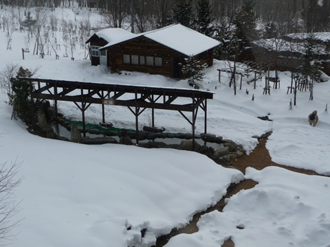 從山頂回鍋平高原站時看見兩個露天風呂, 原來是鍋平高原上神樂館內的神寶乃湯, 想在這裡浸湯, 要三思啊!