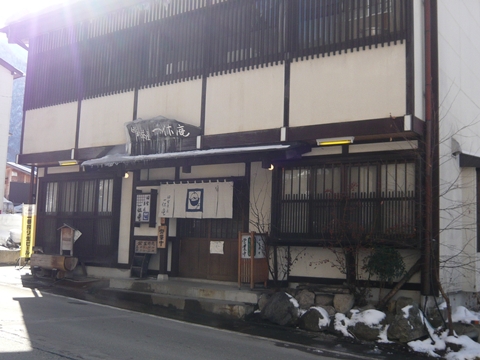 住宿兩晚深山櫻庵只包一餐晚飯, 旅館很細心地為客人預備了一張平湯食店的地圖, 總數不到十間, 在我們詢問下服務員推薦了食店A給我們. 安放好行理後便出外找吃的. 由旅館到平湯巴士站走路只需五六分鐘, 街道兩旁盡是溫泉旅館, 一路上就只有我們在瓜瓜叫, 冷清得可以, 找到了食店A, 可是關門了, 忘記了帶來旅館的食店地圖, 不太肯定眼前的店子就是食店A, 所以我走回旅館取地圖, 其實事前已做足了功課, 平湯很多食店都營業至九時, 雖知網上騙子多, 但沒想過整條村都在騙人啊! 現在還不到七時, 實情是只有一間便利店和一間咖啡室在營業, 天呀! 確認了食店A後, 我告訴服務那店已關門, 她竟露出驚訝的表情, 可想而之, 連原居民也受騙了.