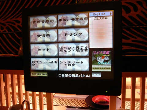 這裡的壽司質素大概如香港的千兩, 在日本吃這種質素的壽司, 實在很不甘心, 唉! 不過, 我倒是見識到他們的新科技. 是不是所有日本的転轉壽司都是這樣落單呢? 若果是的話, 就失卻了回転的意思了.