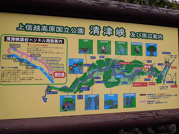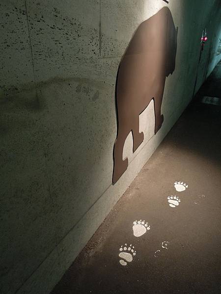 隧道內也不是空礦礦的, 有播放清津峽影片的地方, 有動物的圖片介紹, 也有專供遊人拍照, 附有清津峽大招牌的角落, 走著走著也不覺太悶.