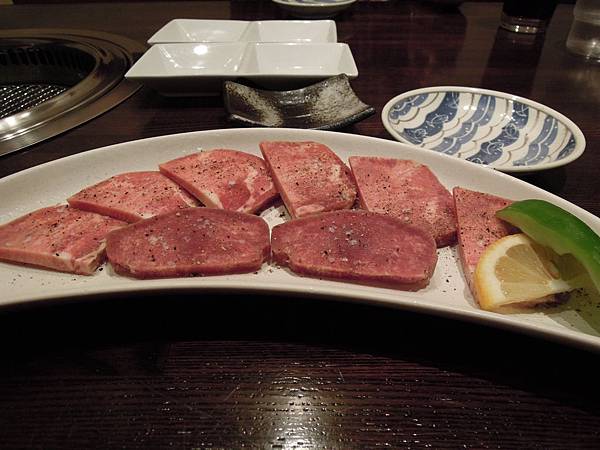 我們點了一客牛舌(1,200yen). 基本上都很味道, 只是前排兩塊比較深色的牛舌很韌, 扣分扣分.