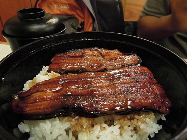 吃牛途中, 鰻魚飯來了, 這裡的鰻魚註明是愛知三河產的, 價錢比隔鄰的鰻魚專門店貴一倍.