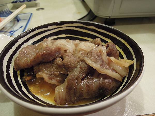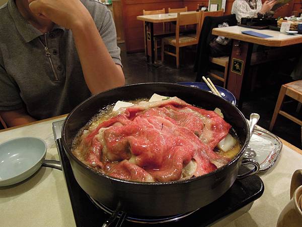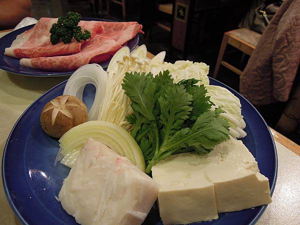 先來的是國產牛すき焼き, 原本是想吃じゃぶじゃぶ, 但只有和牛才有, 價錢似乎超出預算, 再者, 最近宿命達人大讚牛肉壽喜鍋, 那就試一試吧!