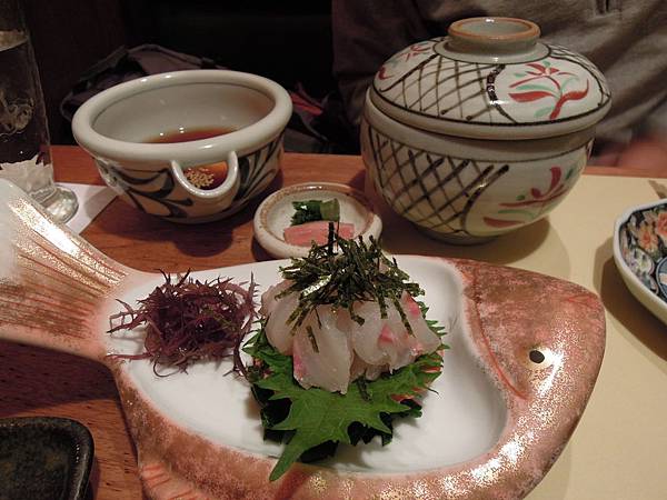 愛媛名物真鯛魚飯, 服務員教我們將魚片放進附生雞蛋的醬油內, 與飯同吃.