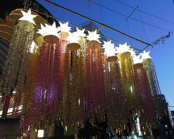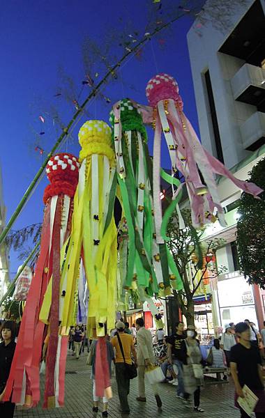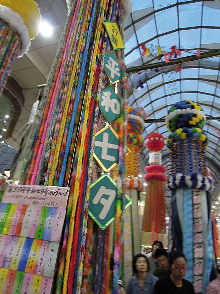 買完飯團紀念品後, 我們被送到仙台JR站, 參觀七夕祭. 大家都知道七夕祭不是動的祭典, 而是將"吹き流し"掛滿兩條商店街, 讓遊人欣賞. 我們從近車站的商店街開始觀祭, 一小時後在市民廣場匯合.