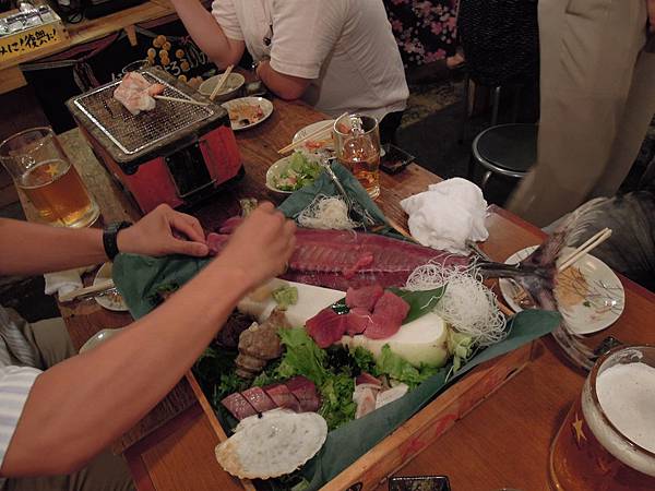 有家室的前場先生可沒興趣啊, 還不到十時就結帳了. 有人認為海鮮剌身是這個價錢, 但縱橫了居酒屋幾天的我卻不這麼想, 為要找出真相, 只好幹一件非常沒禮貌的事.