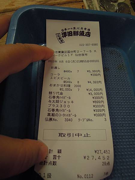 只有お通し, おまかせ料理和競り代金(穴子)是食物, 其他都是飲品, 哦?! 原來你們喝了這麼多, 我只喝了一杯可樂啊!