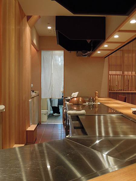 我們坐在這裡看大廚表演, 至於七點來的那枱日本客人, 則正面對著大廚兼吃油煙.