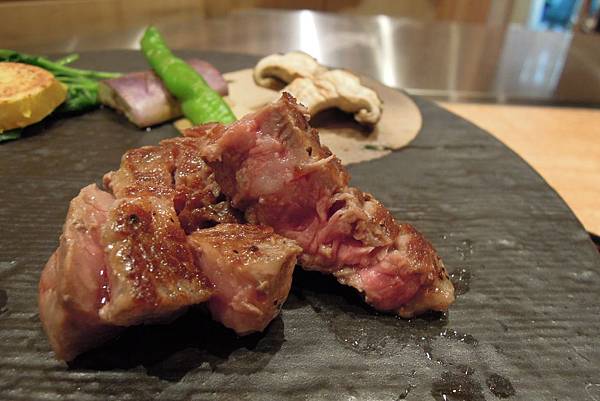 吃一小杯沙冰清清味蕾, 輪到期待的白老和牛了! 大廚又問我們要幾成熟, 我們要五成, 之後有點後悔, 會不會太生呢! 最後發現我們過慮了.
