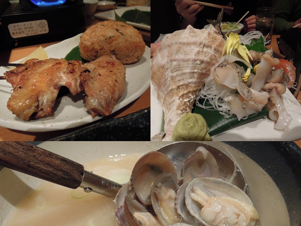 手羽先三隻, 燒飯團二個, つぶ, あさり湯