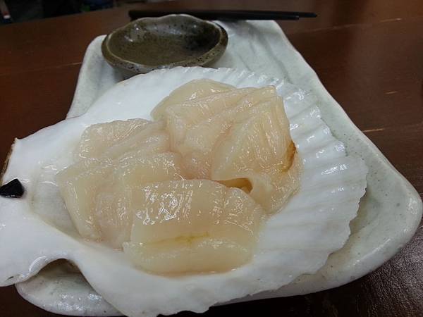 北寄貝剌身(400yen), 這隻明顯比較瘦削, 仍是北寄貝壽司較優.