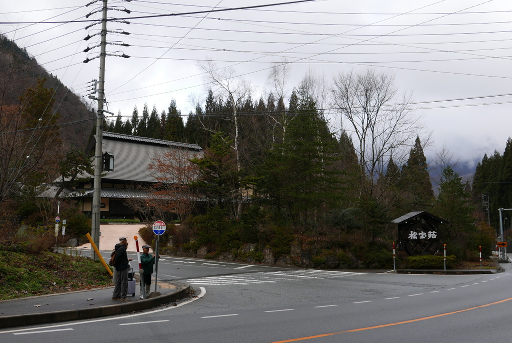 搭濃飛巴士去溫泉旅館了, 今次我選了在新平湯溫泉的松宝苑, 但旅館卻正正位於福地溫泉口巴士站.