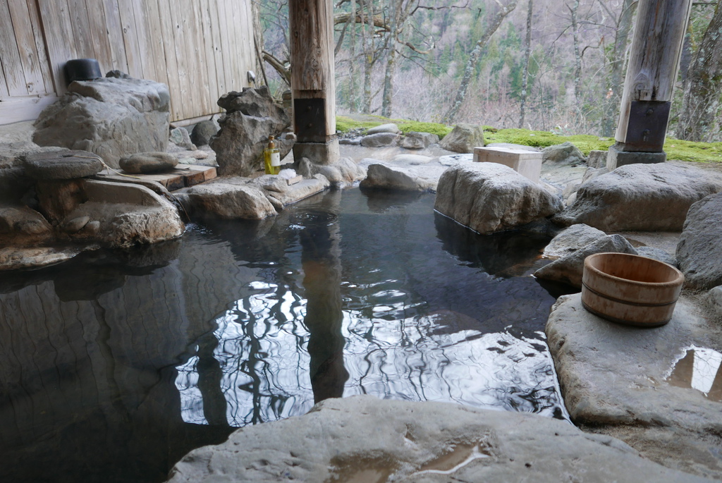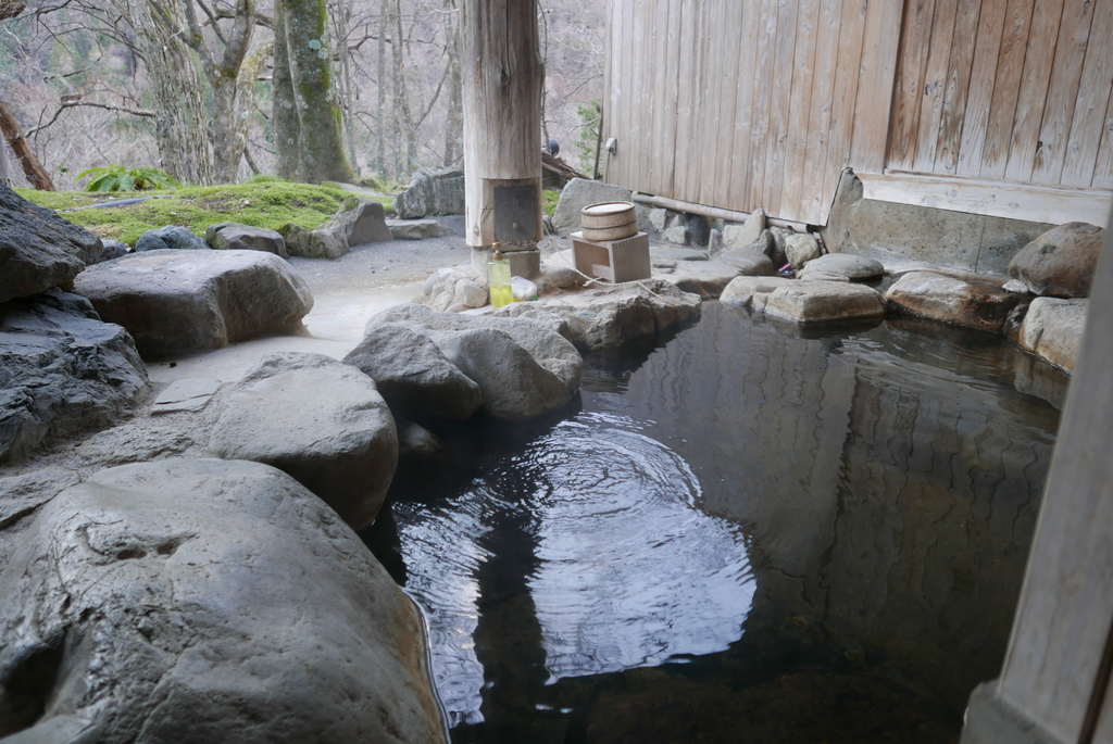 這裡也散發出令人很舒服的木(檜やあすなろなどの木曽五木)的香氣, 可惜泉水有點過熱, 我大部份時間都呆在露天池裡.