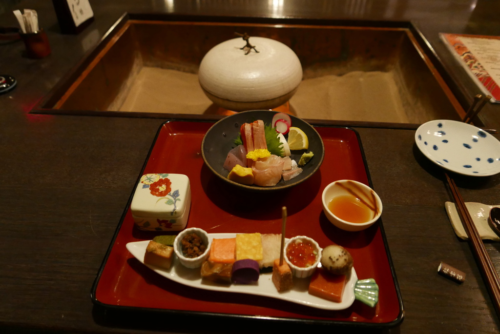 晚飯時間是六點, 今天只有三組客人, 我被安排坐在最裡面, o no! 今天又要跪著吃了!