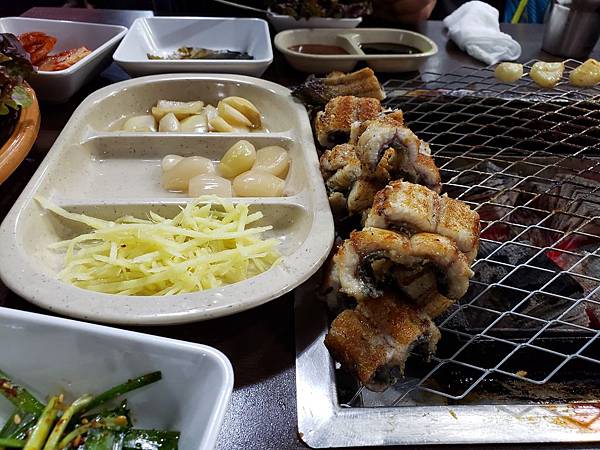 休息一會就去吃午飯了, 風川鰻魚, 網絡資料說是韓國產的鰻魚, 和日本鰻魚不同, 韓國鰻魚現烤現吃, 不加千年醬汁. 到店時已經兩點, 但仍要在外吹風20分鐘才可入坐.