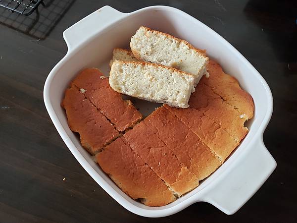 做到一半發現沒有攪伴棒, 那只好用飯殼代替, 到最後一步又發現只有蒸盤而沒有焗盤,
